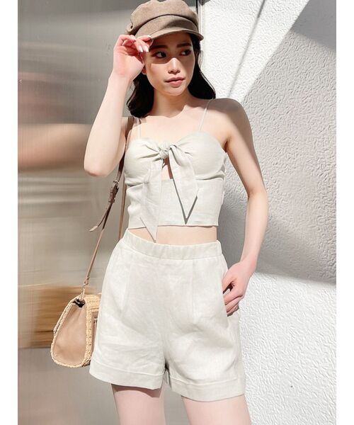 【商品コメント】 裾のロールアップと後ろのポケットデザインがカジュアルな印象を与えるショートパンツ。 ウエスト位置が高いので脚長効果も◎ リネン素材で夏らしさがグッと高まるアイテムです。 ナチュラルな風合いと清涼感が大人の雰囲気にマッチして、洗練されたスタイリングに仕上げてくれます。 【商品特徴】 透け感:なし 伸縮性:なし 生地の厚さ:薄手 サイズ感:普通 裏地:なし 【 お買いものにおすすめの便利機能! 】 ♥商品のお気に入り登録 完売カラーの再入荷時や、ラスト1点の時、セール開始時にお知らせします。 ♥ブランドのお気に入り登録 新商品や再入荷、セール情報など、いち早くブランドのお得な情報を受け取ることができます。 ぜひご活用ください!