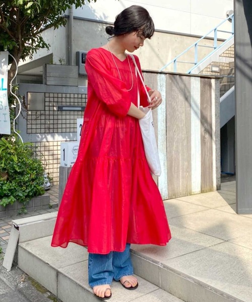♦着方を変えるだけで表情ががらりと変わる!薄く透け、肌触りの良いボイル素材のティアードワンピース。ティアードギャザーの幅にもこだわり、かわいく見えすぎないラインにデザインいたしました。前後2WAYで、フロントは天幅が若干広めで、デコルテ部分が美しく見え、バックは比翼ボタンにして、こなれた感をプラス。比翼を前に着ていただくとコートシャツのような羽織としても着用いただけます。素材的にシワも風合いに見えるので、クーラー対策の一枚としてカバンに畳んで持ち運べる万能な一枚です。何より、羽織るだけで華やかな印象になるので、初夏のドレスアップにも、デニム合わせでカジュアルにドレスダウンスタイルも!・ふんわりとしたシルエットが女性らしい雰囲気に・長いシーズンでお使い頂ける優秀ワンピース・テイスト問わず幅広いスタイリングが楽しめる<おすすめスタイリング>センタープレスデニムパンツ(SNZ1011302A0001)やプリントイージーパンツ(SNZ1011302A0001)との合わせがおすすめです。- - - - - - - - - - - - - - -透け感:あり裏地:なし伸縮性:なし光沢感:なし生地の厚さ:薄い- - - - - - - - - - - - - - -※撮影環境により、光の当たり具合で色味が違って見える場合があります。 あらかじめご了承下さい。 ●お気に入り登録のおすすめ●≪気になるアイテムを登録≫ハートをクリックしてお気に入りに登録すると完売カラーの再入荷やラスト1点の通知、セールの通知を受けとることができます。≪ブランドを登録≫新商品や再入荷など、いち早くブランドの情報を受けとることができます。