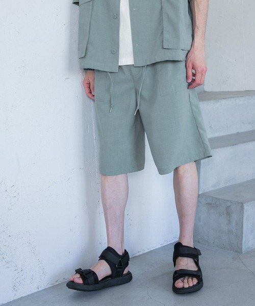 セットアップ対応爽やか素材のショートパンツで夏を楽しくドライタッチのポリエステル素材を使用したショートパンツ。ワイドシルエットにワーク調のディテールで存在感のあるデザインに。夏にぴったりのカラッとした爽やかな素材感で暑い季節ほど使いやすいアイテムです。同素材のシャツと組み合わせたセットアップもおすすめです。※屋外の光や照明の当たり具合で、実際の商品の色味とカラー別画像の色味に違いが発生する場合がございます。商品の色味はスタジオ撮影の詳細画像にてご確認ください。