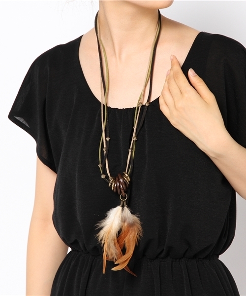 コーデにプラスするだけでエスニックなスタイルに!チャイハネでロングセラー人気のフェザーネックレス。男女問わずお使いいただけます◎※こちらの商品は1点1点職人による手作りとなります。また羽やウッドパーツの大きさ・形・色合いには個体差がございます。(画像は一例です。)あらかじめご了承ください。Amina Collection Co.,LTD.