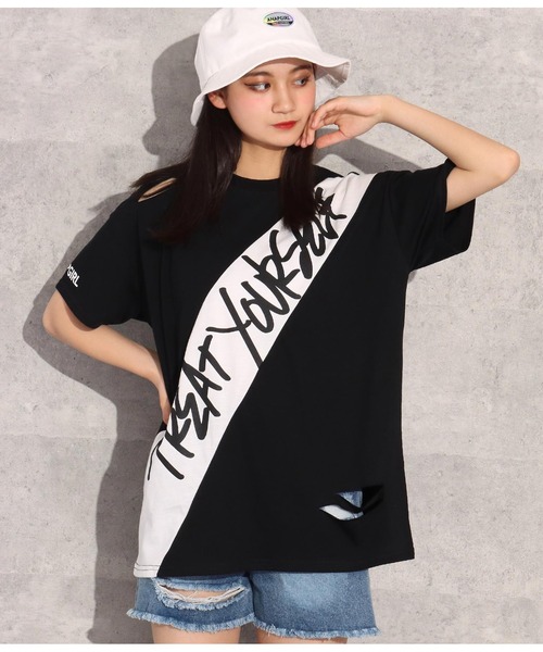 斜めのBIGロゴがアクセントのTシャツ♪ どんなボトムにも相性バッチリ☆ これからの時期に1枚はもっておきたいゆるカワアイテムです! 【STYLING】 レギンスと合わせてダンススタイルやストリートMIXがオススメ! スキニーパンツでさらっと着こなすのも◎ バケットハットや小物、アクセをプラスしたピープススタイルまで着まわせる1枚◎ トップスとボトムを同色でまとめたワントーンコーデもオススメ! 【DETAIL】 シンプルで動きやすいけれど、どこかニュアンスのある今っぽデザイン。 ダメージデザインもさりげないアクセントに。 友達や姉妹で雰囲気を揃えればオシャレ度もよりUP♪ ※ストレッチあり※裏地なし ※ホワイトは若干透ける素材になっております。 ※生地のデザイン上、実際の商品と画像とで柄、ダメージの配置が異なる場合がございます。予めご了承ください。 ※商品のお取扱いに関しましては、商品に付属のアテンションカード、洗濯ネームをご覧ください。 ※モデル着用画像は光の当たり具合で色味が違って見える場合がございます。 実物の商品の色味はマネキン着用画像をご参照ください。 【お買いものをお楽しみいただく為に!】 ▼商品のお気に入り登録 完売カラーの再入荷通知や、ラスト1点の通知、セールの通知も受け取ることができます。 ▼ブランドのお気に入り登録 新商品や再入荷など、いち早くブランドのお得な情報を受け取ることができます。