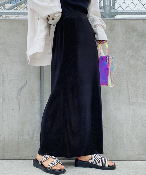 伸縮性のある素材で履きやすいプリーツタイトスカート