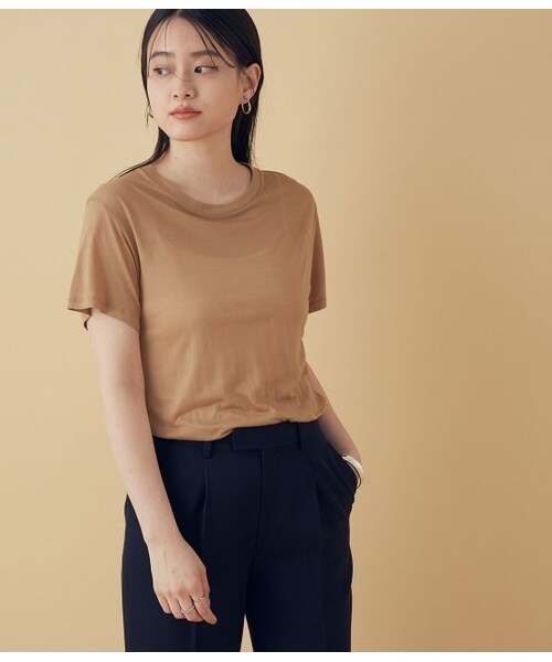 【Material】バンブーコットン100%でベースレンジの定番素材。シルクの様にやわらかい肌触りが特徴で着心地抜群です。通気性や吸収性、乾きやすさに優れています。【Design】シンプルなハーフスリーブのカットソー。首元の絶妙な空きとお袖のルーズ感が抜け感を出してくれます。【Color】肌馴染みの良いヌードカラー。【Stylingpoint】どんなボトムとも相性抜群。1枚着としても、インナーとしても活躍してくれます。【Brand】Baserange(ベース