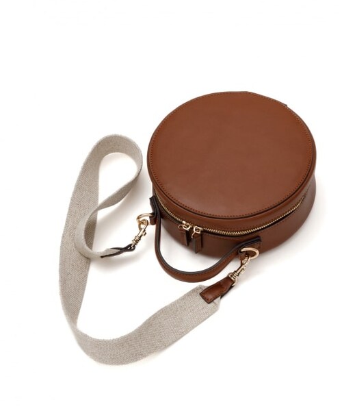 ◇2021春夏◇ADAM ET ROPE' FEMME【Material】しっかりとした牛革調のエコレザーを使用。【Desigh】立体感のある丸いフォルムが印象的な2WAYバッグ。本体のキャメルブラウンカラーのレザーと、ショルダーストラップのナチュラルなカラーの対比が大人っぽく、春夏らしい軽さのある組み合わせが魅力。底マチに付いた鋲で転がらずに自立してくれる点や、ファスナーでしっかりと開閉する荷物の出し入れのスムーズさ、見た目以上の収納力も嬉しいポイント◎【Color】
