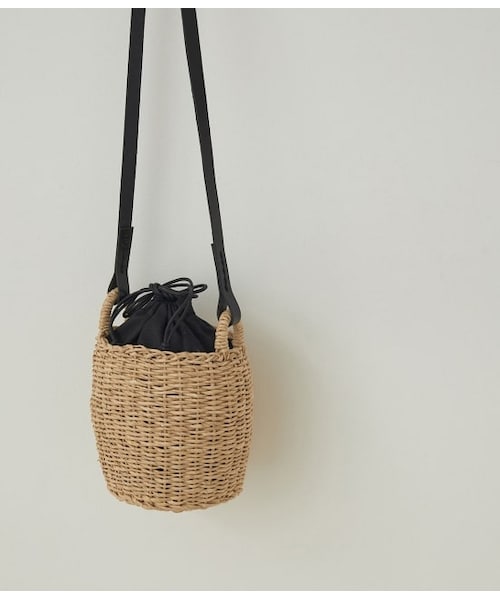 ◇2021春夏◇ADAM ET ROPE' FEMME【Material】かご:天然草木のメイズ(トウモロコシの皮を乾燥させたもの)ストラップ:牛革 【Design】ナチュラルな天然素材とブラックレザーの対比で、かごバッグをスタイリッシュな印象に仕上げたかごバッグ。取っ手の付いた壺のようなフォルムがユニークで、アイキャッチーになるデザインが魅力。インナーには巾着が付いており、見た目以上のたっぷりとした容量が入るのも嬉しいポイント。【Color】ナチュラル×ブラッ