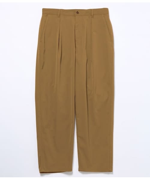 【素材】「春先から盛夏までロングシーズンで穿ける、極上の履き心地もプラスされた機能性素材」素材はタテ糸にフルダル糸、ヨコ糸にしなやかな伸縮性を持つソロテックスを使用したツイルストレッチ素材。ポリエステル素材ながら天然素材のような見え方となっており、ソフトでナチュラルな風合いになっています。程良く薄手の生地感で接触冷感があるので、これから盛夏・晩夏までロングシーズンで着用していただけます。【デザイン・シルエット】「美脚に見せる計算されたテーパードシルエットが秀逸。家でも外でも履け