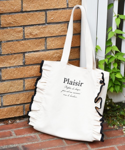 デイリーに使えるコットントートバック 大容量でデイリーに使えるトートバック カジュアルなアイテムですが、サイドにフリルデザインを配して女性らしいアイテムに! またフロントのロゴもデザインポイント◎ 中にボタンもあり、機能性も安心です。 ※撮影環境やご覧のモニター環境によって実際の商品とお色味が多少異なってみえる場合がございます。ご理解の程何卒よろしくお願い致します。