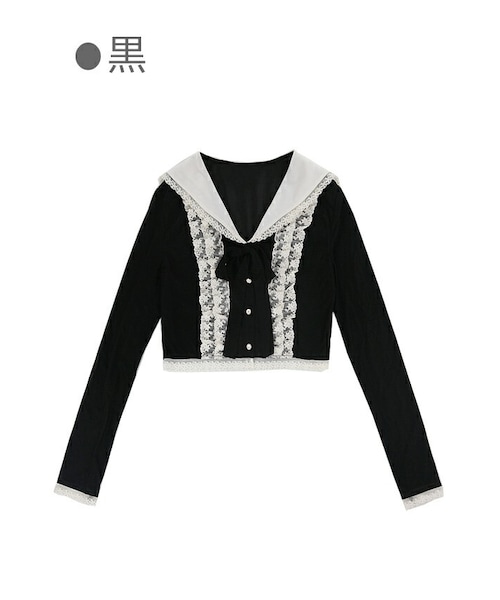 夏のコーディネートや日焼け対策で大活躍 セーラー襟にレースONで甘さぐぅ~んとUP 所々レースフリルでデコったSweetデザイン エアコンが効いた室内や紫外線の強い屋外 手放せなくなる実用的なミニカーディガン 襟元にはリボン結びできるタイ付き 着用するだけで足長効果バツグンだよ 「白」「ピンク」「黒」の3色展開