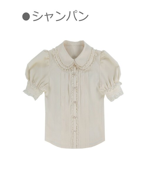 とろけるようなベージュ系カラーを基調に ダブルラウンド襟にレースをあしらい ぷっくりとしたCuteなパフスリーブ 袖口には2重レースかわいさも倍増 イノセントなドーリー世界観を作り出す 女の子らしい甘くてかわいい大本命ブラウス お好みでリボンタイやブローチを付けるとGOOD カラーは「シャンパン」1色のみの展開