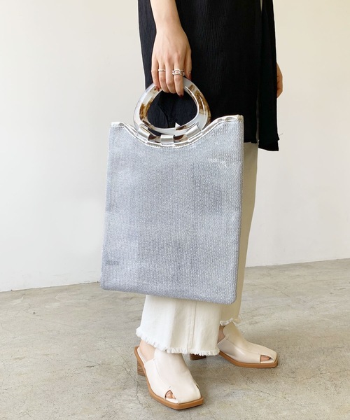 大人カジュアルにきまるマーブルアクリルチュールハンドバック【デザイン】マーブル柄のアクリルの持ち手と、スッキリした長方形のチュールの組み合わせがオシャレなハンドバックです内側には丈夫なビニール生地がコーティングされているので、バッグへの負担が少なく重みのある荷物も持ち運べます四角いシルエットなのでノートや書類を入れるのにもぴったり内ポケットがあるので収納もしっかり出来ます【スタイリング】シンプルな服に合わせてスタイリッシュにきめるのもTシャツやデニムに合わせてカジュアルにきめるのも◎透け感があるので、かわいい小物を入れて見せるもオススメです▼もっとお買い物を楽しんで頂く為に▼〈商品のお気に入り登録〉お気に入りの登録をして頂きますとセールの通知・ラスト1点になった時の通知や、再入荷通知を受けることができます。〈ブランドのお気に入り登録〉新商品の発売や再入荷、タイムセールやクーポン発行のお知らせなどLianがお届けするお得な情報を受け取ることができます。
