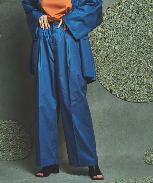 ー feature ー ■カラーによって異なる生地を使用。 ・ブラック、カーキ コットンポリエステルのシャンブレーギャバジン。 高級感を感じられるしっかりとしたハリ感と、シャンブレーならではの光沢のある玉虫色の奥行きのある表情。 ・ピンク、ブルー コンパクトさと適度なハリ感のあるタイプライター素材。 加工により洗いざらしたような自然な風合いと程よいストレッチ性をプラス。 ■パターン →人間の動きを考慮して作成された独自の立体的なパターンは、見た目の綺麗なシルエットを維持しつつも着心地にストレスを感じないものになっております。 股ぐりの構造を変化させ運動量を増やしているので、通常のスラックス同様見た目の綺麗さはそのままに、そこに抜群の動きやすさをプラスさせたものになっております。 ■立体構造で縦にストンと綺麗に落ちるシルエットが、ワイドながらダボっとしただらしない印象にならず洗練された印象。 着用感も非常に快適です。 ■インタックにセンタープレスと、太めのシルエットを美しく見せてくれる安定感のあるディティール。 ■ウエストは後ろ身頃にゴムを施したイージー仕様に深めのタックを入れ、ゆったりとした快適な着用感。 内側にはドローコードもあり、サイズに幅を持たせることで幅広い方にお楽しみ頂けるようにしております。 ■ボタンは高級品である水牛ボタンにケシ加工を施した、オリジナルの水牛ボタンを使用し、細かいところまで抜かり無し。 ■MAISON SPECIALの中でも人気の高いベーシックなワイドパンツ。 ワイドシルエットにチャレンジしたい方にはまずおすすめしたい安定感抜群のシルエット。 素材感やカラーで遊びを効かせるのがMAISON SPECIAL流。 お持ちのボトムのラインナップに1本あれば、いざという時にきっと活躍してくれる頼れるアイテムです。 【MAISON SPECIAL/メゾンスペシャル】 SPECIAL IS YOUR STANDARD “ハイファッションとハイファクトリー” 相反するものを掛け合わせて融合させることにより、新しい価値のファッション“CRAFT FASHION”を生み出していきます。 ・商品のお気に入り登録 再入荷、残り1点、セールなどの通知を受け取ることが出来ます。 ・ブランドのお気に入り登録 新商品や再入荷、ショップのおすすめトピックスなど、いち早くブランドのお得な情報を受け取ることができます。