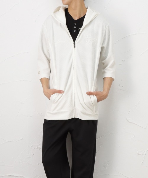 初夏の羽織りに最適な6分袖のデオドラントドライパーカーです。 消臭効果に抗菌防臭機能を備えた生地を使用しています。 カラーは、ホワイトとブラックの2色展開です。 胸元とバックの刺繍がおしゃれなアイテムです。 着回しが効くので、一枚持っていると重宝すること間違いなしです。 別売りのショーツとのセットアップも楽しめます。 ■モデルサイズ 179cm 56kg B:86/ W:72/ H:81 着用サイズ:L ※商品画像は、ご覧になられているパソコン、ディスプレイ等の設定により、実際の色味とは異なる場合がございます。