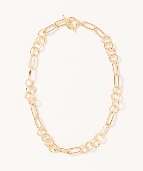 ミックスされたチェーンがポイントのネックレスが登場です。シンプルながらもスタイリングにメリハリ感をプラスしてくれます。首元に映えるショートなデザインもGOOD!
