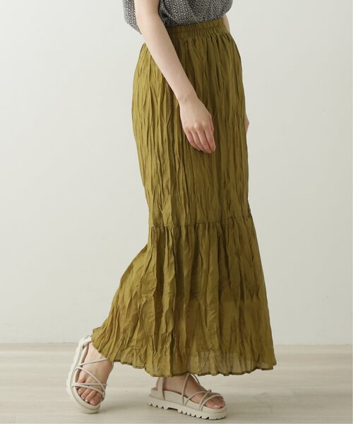 シワ感を演出するクリンクル加工でオシャレ見え◎ 光沢感のある素材も相まって、コーディネートのポイントになる事間違いなしのスカートです。 膝上あたりに切替が入っているので、 広がり過ぎずすっきりとしたシルエットに。 ウエストはゴム仕様で窮屈感なく着用でき、季節を選ばず着回しやすい! 裏地付きで透ける心配なく着用できるのも嬉しいポイントです◎ ※撮影環境により実際のカラーとやや異なる場合がございます。 詳細画像が実物に近いカラーとなりますので、画像をご参照の上、ご了承頂けますようお願い致します。 ■モデル:[身長157cm/着用サイズ FREE] * [POINT] ・着回し抜群な万能アイテム ・着こなしやすいシンプルなデザイン ・大人カジュアルな着こなしに ・オフィスカジュアルにも使える通勤OKなアイテム ・お家でも、ちょっとしたお出かけでも。両用可能なワンマイルウェア ・デート服にもオススメ◎ [STYLING] ・フォトT(プリントT)で印象的なスタイリングに ・透かし編みニットを取り入れたレイヤード ・オーバーシャツでゆったりと ・シアーシャツを合わせた抜け感ある着こなし ・PVCサンダルやメッシュ・シアーサンダルで涼し気な印象に ・大人の品格を添えるグルカサンダルを取り入れて ・存在感あるブロックヒールやチャンキーヒールで足元にポイントを ・クリアビーズや雑材など素材感あるBAGを合わせてシーズンライクに 店舗にお問い合わせの際は、下記の品番をお伝え下さい。品番:114230940