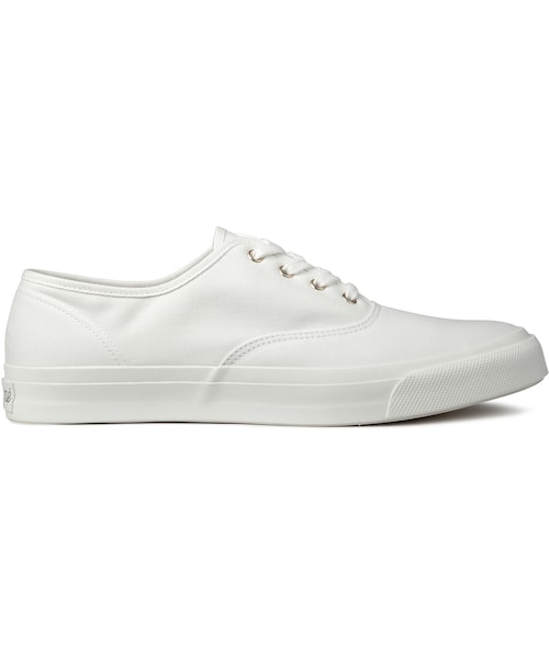 Maison Kitsuné defines the ‘new classic’ with distinguished clothing for men and women of the highest quality for everyday life. Special care is given to the quality of the fabric and the tailoring of the garments – strategic sourcing of factories that still embrace artisan methods for a durable and timeless product. Simple, timeless plimsolls with 100% cotton canvas uppers, rubber soles, Kitsuné branding at rear and gold eyelets. Made in Japan. Available now in white.