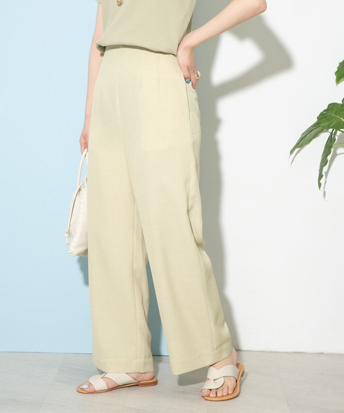 このアイテムはWEB限定商品です。 【清涼感溢れるリネンライクの美シルエットパンツ】 これからの時期に嬉しい爽やかなリネンライク素材のパンツ。サイドファスナーと後ろゴムのウエストデザインなので、腰回りがすっきり綺麗に見える美シルエット。柔らかく、サラッとした肌離れの良い生地で、夏場に活躍間違いなしのアイテムです。 POINT ・ウエストがすっきり見えるサイドファスナー ・夏に映える爽やかなカラーと合わせやすいベーシックなカラーの4色展開 ・ご自宅でお手入れが可能 COORDINATE カジュアル合わせから綺麗目ブラウスまで、雰囲気を変えて合わせて頂けます。シンプルなTシャツや無地のブラウスで合わせれば、パンツのカラーがぐっと映えてコーディネートの主役になります。 ※商品画像は、光の当たり具合やパソコンなどの閲覧環境により、実際の色味と異なって見える場合がございます。予めご了承ください。 ※商品の色味の目安は、商品単体の画像をご参照ください。 ----------------------------- 透け感:なし 伸縮性:なし 裏地:なし 光沢:なし ポケット:あり -----------------------------