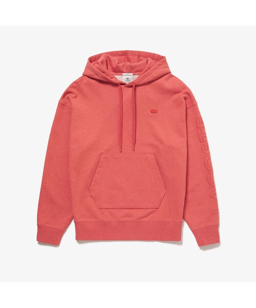 裏パイル仕立てのフードスウェットを、トレンド感あるルーズフィットシルエットでモダナイズ。ワニロゴパッチまで同色で統一したワントーンデザインで仕立てつつ、左袖にはビッグサイズのネームグラフィックを配置。ボディと同色のステッチカラーで、存在感と普遍性を兼ね備えた1枚です。