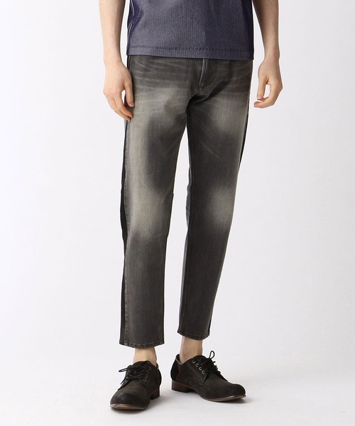 サイドラインの切り替えを入れた9分丈のデザインデニムです。膝裏に取った切り替えとダーツで足のラインに沿った立体的なシルエットを形成し、動きやすい設計にしております。表地には10ozの2wayストレッチデニム素材を使用。タテヨコに非常に良く伸び、キックバックもしっかり効いているのが特長の素材です。サイドライン部分には同じ規格のブラックデニムを使用しております。※画像の商品はサンプルです。実際の商品とは仕様・加工・サイズ・素材が若干異なる場合がございます。