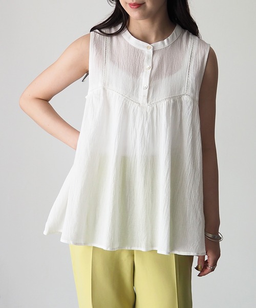 【Riberry ハシゴレースノースリギャザーブラウス】 レース使いがアクセントの夏にサラッと着られるノースリブラウス ■Styling 1枚ではもちろんカーデやシャツなど羽織ものとの相性も抜群。 デニムとの大人カジュアルなスタイリングはもちろん、 スカートと合わせたワンピースライクな着こなしもおすすめです☆ ■Detail ふわっと広がる裾が女性らしいコーディネートを演出してくれます。 ボディラインを拾わないシルエットがうれしいポイント◎ ■Material 綿100%でサラッとした着心地です。 裏地:なし 透け感:あり 伸縮性:なし 生地の厚さ:普通~薄い 【Information】 ◆《お気に入り登録》がオススメ◆ ・「商品のお気に入り登録」で再入荷通知や、ラストの通知、セール通知も受け取ることが出来ます。 ・「ブランドのお気に入り登録」で新商品や再入荷など、お得な情報を受け取ることが出来ます。 ※撮影時のライティング、ご覧になっているモニター・PC環境により、実際の商品と色味が異なって見える場合がございます。 予めご了承をお願い致します。 ※ご注文いただいた予約商品のお届け時期の確認は、注文履歴ページより行えます。 ※他のキャンペーンにより、期間中に価格が変動する場合があります。 ※セールは予告なく終了させていただく場合もあります。 ※ご注文いただいた予約商品のお届け時期の確認は、注文履歴ページより行えます。