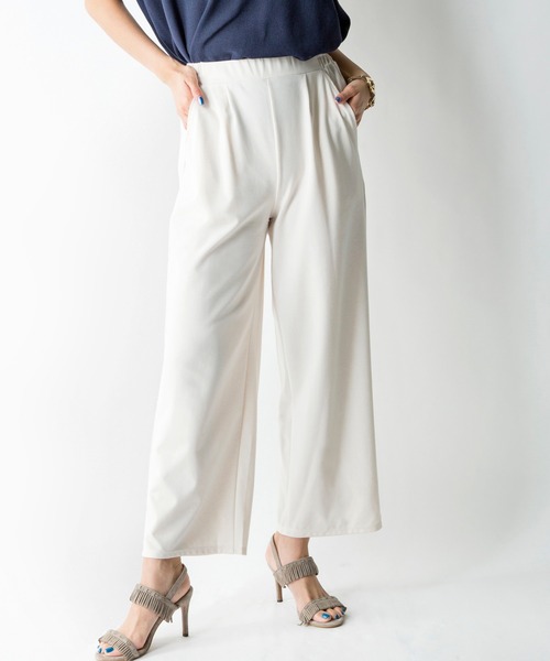 【撥水加工】夏を快適に過ごすための機能素材「Comfy Summer」シリーズが登場。第2弾は撥水加工!【デザイン】布帛見えするカットソー生地に撥水加工を施しました!サラッとした肌触りのカットソーでキレイ目にも着まわせる高見え優秀パンツです。実はこの素材、撥水だけではなく吸水速乾、UVカットもしてくれ汗ばむ季節も快適に過ごせるアイテムです。撥水なので汗をかいてもシミになりにくく、汚れもつきにくいので夏の悩みを解消してくれます。カットソー素材なのでリラックスして着れるのに、美シルエットでオンにもオフにも使えるワイドパンツです。しっかりとした素材なので足のラインをひろわない丁度いいワイドサイズです。同素材のドルマントップスとセットアップで着ると大人のきちんとリラックススタイルが完成します。雨の日の水撥ねの不快感も解消されるのも嬉しいポイントです。布帛見えする素材なのできちんとしたブラウスとも好相性なのでオフィスにも便利。今年らしくワンピースやロングトップスとの相性も◎【MODELサイズ】■オフホワイト | MODEL(メイン画像):身長 165cm / B 81cm / W58cm / H84cm■ブラック | MODEL(メイン画像):身長 165cm / B 81cm / W58cm / H84cm■ブラウン | MODEL(メイン画像):身長 165cm / B 81cm / W58cm / H84cm【MODEL着用サイズ】Fサイズ<スタッフレビュー>■スタッフ・I身長:153 体型:痩せ型 普段の着用サイズ:SS/Sかかと少し上のフルレングスパンツです。ウエストはぐるりゴムですがカットソー素材なのでウエストまわりにギャザーは入っていなく、スッキリと見えるのが嬉しいです。ふと過ぎないサイズのフレアでももの針が気になる私でも着れるので使い勝手がよさそうです。フルレングスでも雨の日の裾がびしょびしょになるのが避けれるのでとても嬉しいです。■スタッフ・K身長:158 体型:普通 普段の着用サイズ:Mくるぶしまでのロング丈です。シンプルで着心地もよくラフに着られる上に、形がきれいなのでカジュアルになりすぎない大人っぽい雰囲気を作れます!