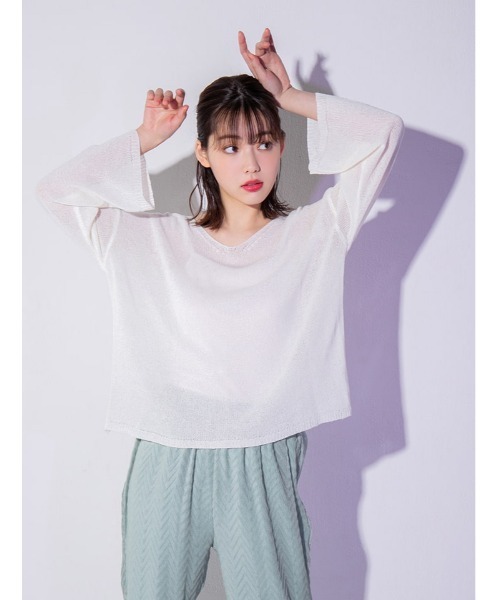 calin/カラン 着るだけで毎日がハッピーになる “カジュアルポップ”なスタイルを提案◎ トレンドムード漂う抜け感シルエットのシアープルオーバー 程よい透け感がトレンドムードを漂わせるシアープルオーバー。前後にすっきりと開いたVネックに、バックにあしらったリボンがアクセントをプラスします。肩のラインを落としたゆったりとしたシルエットで、抜け感のある着こなしが楽しめるひと品です。 ※撮影時のライティング、PCやスマートフォンの環境により写真の色味が実際の商品と異なって見える場合がございます。ご了承の上お買い求め下さいませ。 ※モデル着用画像は実際の色と多少異なる場合がございますのでマネキン画像をご確認ください。 《 お知らせ 》 ▼商品のお気に入り登録 お気に入りアイテムの値下げ・再入荷・在庫1点などの通知を受け取ることができます。 ▼ブランドのお気に入り登録 新商品や再入荷、セール、クーポン配布などお得な情報を受け取ることができます。