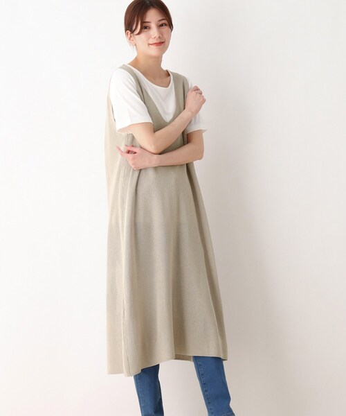 【デザイン】 シャリ感ある素材を使用したベストとTシャツをセット。 ベストは前後2WAY着用可能で、リボンを前にして羽織風にも、また逆にしてレイヤードでも、いろんな着こなしが楽しめます。 長めの丈なので体型カバーにもなります。 それぞれ着まわしやすいこれ一枚でトレンドスタイルが叶う便利なアイテムです。 【生地感】 ベストは、軽くさらりとしたニット生地です。 Tシャツは、柔らかな肌触りです。 ※複数枚のセット商品のため、洗濯表示・注意事項等は、本製品で御確認下さい。 【サイズ】 大きいサイズ(LL)の展開あり。 ※04(LL)サイズはWEB限定サイズです。 モデル情報:身長167cm B78 W62 H88 着用サイズ:02(M) 店舗へのお問い合わせ商品番号:316-22003 ●製品寸法: 02(M):ベスト総丈105cm ベストB94cm ベスト肩幅36cm インナー着丈64cm インナーB94cm インナー袖丈22cm インナー肩幅38cm 03(L):ベスト総丈106cm ベストB100cm ベスト肩幅38cm インナー着丈66cm インナーB96cm インナー袖丈22cm インナー肩幅39cm 04(LL):ベスト総丈107cm ベストB106cm ベスト肩幅40cm インナー着丈68cm インナーB98cm インナー袖丈23cm インナー肩幅40cm 備考: