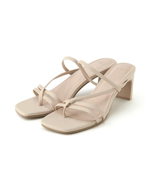 スクエアトゥデザインにモード感漂う。 ナローストラップが足元をヌーディーに演出。 程よい高さのヒールで、安定した履き心地も嬉しいポイント。 ★低反発クッション入りです。