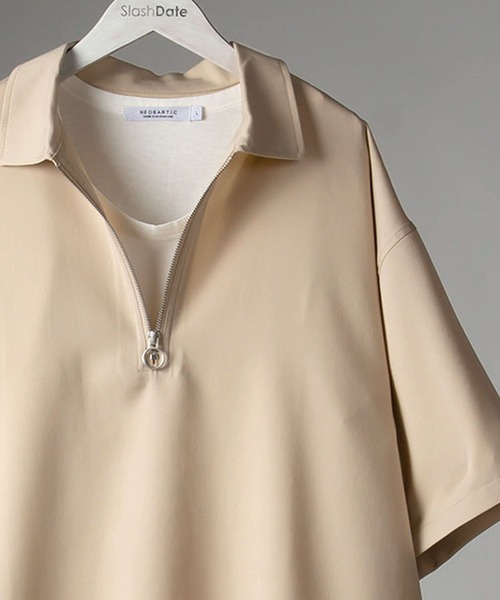 ■ハーフZIP半袖シャツ+タンクトップ/レイヤードスタイル■detail&fabricハーフZIPの引手がリングになっており操作し易く、絶妙なアクセントになる。滑らかなタッチが気持ちよく触りたくなる素材で、シワになり難く、ストレッチ性もあるので着用感が抜群。インナーのタンクトップは裾部分がゆるやかなラウンドヘム仕様でアレンジの効いた着こなしが可能。カラーはモカ・ベージュなどくすみカラーの他にブラック、グレーを展開し加えてブラックチェックの5色。■coordinateアート、カレッジロゴ、フォトなどの各プリントTシャツや、くすみカラー、ニュアンスカラーと共に人気を誇るベーシックなレイヤード仕様のTシャツ。襟付きのハーフジップは絶妙なアクセントになり1枚で様になるアイテムだからこそ合わせるコーディネートも広がりスキニーパンツ、テーパードパンツ、ホワイトパンツ、シェフパンツ、オーバーオールなど選ぶアイテムでトレンド感が一気に高まる。同色系のパンツを合わせればセットアップ風の着こなしも可能。ベーシックなサイズ感を活かしインナーにロング丈のタンクトップや7分袖、9分袖のTシャツを合わせる事でリアルレイヤードスタイルにも相性は抜群。トップスにはベーシックな無地やオープンカラーシャツ、ワークシャツでクリーンな着こなしを演出したりストライプやチェック、ボーダー、アロハなどの総柄シャツで明るいコーディネートも楽しめる。これからの季節にはスニーカーはもちろん、スポーツサンダル、スポーツMIXで合わせると一気に爽快なイメージをプラスできサコッシュ、スクエアバッグ、バケットハットやローキャップの小物類の組み合わせでキャンプなどのアウトドア・レジャーシーンでも活躍する。サマーシーズンにはネックレスやブレスレットなどのアクセサリー使いが映える。ベーシックなサイジングできれいめなコーディネートはもちろんサイズを上げたオーバーサイズでの着こなしもお薦め。また、インナーとしてのレイヤードやくすみカラーを差し色としてもスタイリングが可能。ユニセックスで着用できるのでカップルコーデや友人同士のペアコーデにも最適。ワンマイルウェアとしても活躍する。 <お買い物をお楽しみ頂くために>■購入ボタン横のハートマークをクリック!完売カラーの再入荷通知、ラスト1点の通知、セールの通知も受け取ることができます(商品のお気に入り登録)■ショップのトップページにあるハートマーク【お気に入りショップに追加】をクリック!新商品の入荷や再入荷等、いち早くブランドのお得な情報を受け取ることができます(ブランドのお気に入り登録)【Slash Date/スラッシュデイト】カジュアルとクリーンが融合するクローゼットをテーマに、リラックスとスタイリッシュをMIXさせたボーダレスなファッションをプチプライスで提案します。