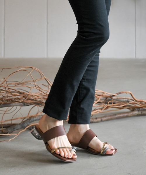 クリア素材との異素材MIXで夏を感じるモードカジュアルな足元に。 トングデザインとスクエアトゥがモードなサムリングサンダル。 トレンドのクリアヒールを組み合わせてよりシーズンムードを高めてくれるデザインに。 落ち着いたトーンのカラーリングでありながら 光を受けてきらっと輝く素材をアクセントにすることで印象的な足元を演出。 異素材同時の組み合わせをシックに楽しめるアッパーデザインは 個性的な異素材使いでヘルシーなデザインとシックなカラーリングでカジュアルに楽しめます。 ★スタッフ着用コメント★ STAFF:ゆみ 甲高:高め 甲幅:広め 普段履くサイズ 22.5CM (SかMサイズ) 足長:21.8CM 足囲:22CM 足幅:9CM Sサイズを着用しました。 サイズ感は丁度よく、サムリングも締め付け感ないのでとっても履き心地が良いです。 少し幅が狭いような感じもあったので、1サイズ上でも良いかと思いました。 STAFF:とり 甲高:高め 甲幅:広め 普段履くサイズ 23.5CM (MかLサイズ) 足長:22.0CM 足囲:23.4CM 足幅:9.7CM 初めにMサイズを着用しましたがきつかったので、Lサイズも着用してみました。 甲高のためLサイズの方がゆったり履けました。 履き心地は見た目以上に良く、アッパーデザインで足をしっかりホールドしてくれるのでフィット感も◎ STAFF:佐倉 甲高:普通 甲幅:普通 普段履くサイズ 23.5CM (Mサイズ) 足長:23.4CM 足囲:23.4CM 足幅:9.2CM Mサイズを試着しましたが、着脱時に多少キツさを感じたのでLサイズも着用しました。 Lサイズは少しゆとりがありますが着脱がしやすかったので、Lサイズの方が良さそうです。 甲を覆っている部分が多いのでサイズが大きくても脱げてしまうことはなさそうです。 STAFF:やっさん 甲高:高め 甲幅:広め 普段履くサイズ 24.5CM (LLサイズ) 足長:23.6CM 足囲:24.0CM 足幅:10.2CM Lサイズを着用しました。 軽くてとても歩きやすく、ソールが足を包み込むように若干カーブしているのも履きやすいポイント! シンプルなデザインなので、スカートでもパンツでもマッチして重宝しそうです。 STAFF:しお 甲高:普通 甲幅:広め 普段履くサイズ 24CM (Lサイズ) 足幅:22.5CM 足囲:22.9CM 足幅:9.2CM Lサイズを着用しました。 サイズはピッタリで、窮屈に感じることはありませんでした。 全体的にホールド感が強く、フィット感は抜群です! ▼商品のデザインやお客様の足の形により、感じ方に若干の個人差があります。 ▼モデル着用写真は撮影環境により、多少実際のカラーと異なる場合がございます。 ☆NOFALLsango ZOZOTOWNお買い物ガイド☆ お買い物をよりお楽しみいただく為に ▼商品のお気に入り登録 ♡をクリック! 完売カラーの再入荷通知・お気に入りアイテムの値下げ・ラスト1点などの通知をお知らせいたします。 ▼ブランドのお気に入り登録 ♡をクリック! 新商品や再入荷などお得な情報を受け取ることができます。