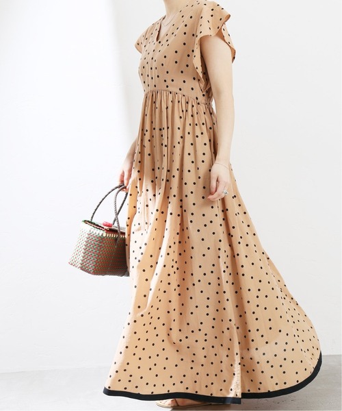 【2021SS】LaTotalite季節感のあるコットン100%のナチュラルなワンピース。ドット柄がキャッチーで着映えし、着るだけで主役の一枚です。切り替え位置を高めに設定し、足長効果も望める仕立て。マキシ丈のナチュラルテイストのワンピースは、休日のリラックスした時間やバカンス用にもおすすめ。暑い季節も風を通して涼しく快適な着心地です。サンダルやスニーカーなどフラットなシューズがテイストに合って◎ヌーディーなトングなども大人ぽい雰囲気でスタイリングできます。カゴバッグを持って、季節をたっぷりと満喫できる大人可愛いワンピースです。ご自宅での手洗いも可能なイージーケアアイテムです。**********************透け感:なし裏地:あり伸縮性:なし光沢感:なし生地の厚み:普通********************************************【スタッフ着用コメント】《スタッフ名:Yu》身長:156cm/体型:普通/普段サイズ:S~M/着用サイズ:38サイズ感:普段は36サイズなので38サイズだと身幅が大きい感じはします、ジャストサイズがおすすめ素材感:綿100%なので肌触りはとてもいいです着心地:脇の見え辛くなっていて安心、二の腕もフリルでカバーされるのでリラックスした着心地**********************※取り扱いについては、商品についている品質表示でご確認ください。※店頭及び屋外での撮影画像は、光の当たり具合で色味が違って見える場合があります。商品の色味は、スタジオ撮影の詳細画像をご参照ください。