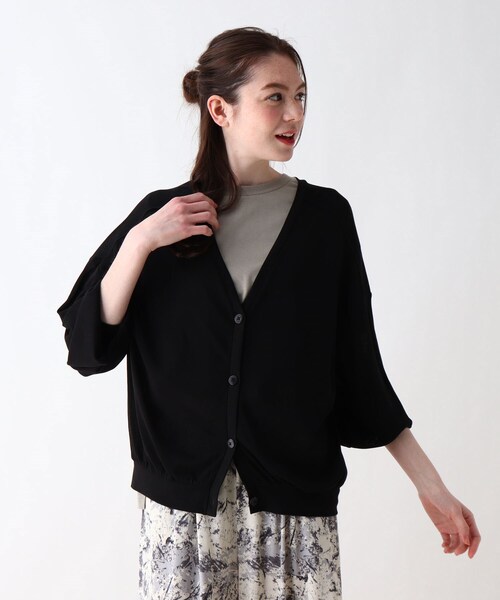 【デザイン】シンプルなVネックカーディガン。ゆったりとした分量感が女性らしい印象です♪夏にも着用できる便利アイテムです。【生地感】透け感のあるさらっとした薄手生地仕立てで、吸った汗を冷却する特殊加工を施しており気温が高くなるこれからも快適に着用して頂けます。【サイズ】小さいサイズSサイズあり。#CutieBlonde#Cutie#cutieblonde#cutie#キューティブロンド#キューティ#20代#30代モデル情報:身長170cm B80 W59 H85 着用サイズ:02(M)店舗へのお問い合わせ商品番号:256-32303●製品寸法:01(S):着丈54cm B108cm 袖丈40cm 肩幅66cm02(M):着丈55cm B111cm 袖丈41cm 肩幅66cm03(L):着丈57cm B114cm 袖丈42cm 肩幅67cm備考: