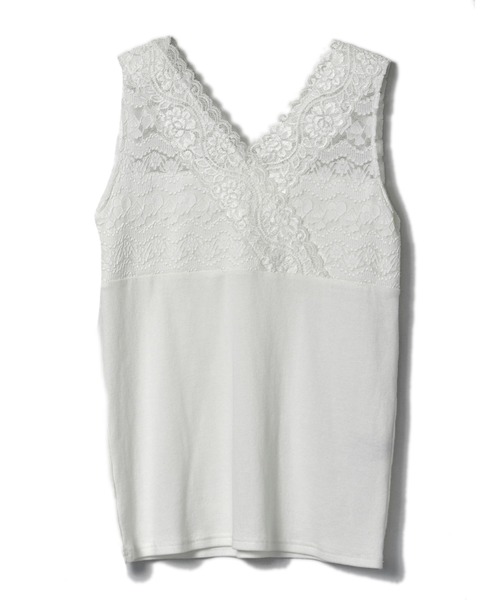 繊細なレースから覗く肌がセンシュアルなムードのタンクトップ。ネックラインは開きすぎないVネックを採用し、上品で大人な印象に仕上げました。襟ぐりが大きく開いたトップスや羽織りの下に着るのはもちろん、シアーアイテムのインナーとしてもオススメの1着。幅広いスタイルに活躍する、万能アイテムです。・・・・・・・透け感:あり(レース部分)裏地:なし伸縮性:あり(本体)生地の厚さ:やや薄手ケア方法:手洗い・ドライクリーニング・・・・・・・※商品画像はサンプルのため、色味やサイズ等の仕様に変更がある場合がございますので、予めご了承ください。