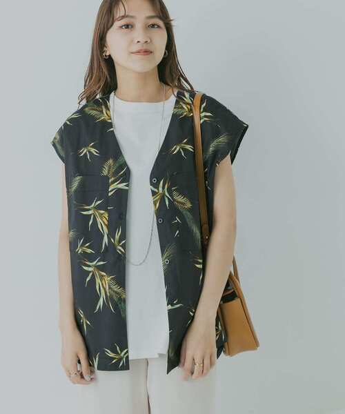 【トロピカルプリントで夏気分を盛り上げる主役級シャツ】 KBF+オリジナルのトロピカルプリントが目を惹くシャツ。綿素材で一見カジュアルな印象ですが、深Vネックを採用しているので大人っぽく着ていただけます。胸元のポケットや長めのサイドスリットでさりげなくアクセントを添えているのも◎ 同素材のKBF+ トロピカルプリントワンピース(KP15-26N200)もございます。 POINT ・KBF+オリジナルのリーフ柄で大人っぽさを演出 ・二の腕をすっきりと見せるフレンチスリーブ ・ボタンを開けると軽い羽織にもなるデザイン COORDINATE 深Vネックを活かして着抜かせるのが大人っぽく仕上げるコツ。定番のデニムはもちろん、ジョガーパンツと合わせた今年らしいスタイルもおすすめです。 ※商品画像は、光の当たり具合やパソコンなどの閲覧環境により、実際の色味と異なって見える場合がございます。予めご了承ください。 ※商品の色味の目安は、商品単体の画像をご参照ください。 ----------------------------- 透け感 : ややあり(OFFのみ) 伸縮性 : なし 裏地 : なし 光沢 : ややあり ポケット : あり -----------------------------