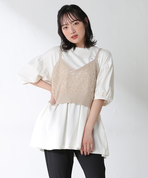 トレンドのレイヤードコーデが 簡単に楽しめる、 ニットビスチェと6分袖プルオーバーの セットトップス。 チュニックはふんわりボリューム袖とペプラム切り替えがポイント。 透かし編みが可愛いビスチェはスタイルアップが叶うコンパクト丈。 お持ちのブラウスやワンピースと合わせて雰囲気を変えてみるのも◎ ご家庭の洗濯機で洗える『ウォッシャブル』機能付きでお手入れ簡単なのもポイントです。 品番:646-13-7034 洗濯:洗濯機使用可 ※サイズにつきましては若干の誤差が生じる場合がございます。予めご了承ください。 ※インナー:6分袖