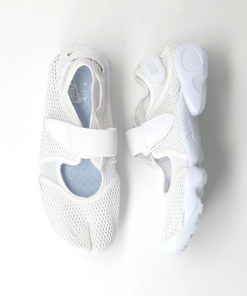 スニーカーとサンダルを一体化させたシューズ、「AIRRIFT BREEZE」。アッパーに使用したNike Tech Ultrameshが、涼しく軽やかな履き心地を実現。足袋形のつま先が、足の負担を軽減し、指で地面をつかむような歩行を可能に。甲と踵にはフィット感を調節できる面ファスナーのストラップを装備しています。店舗へお問い合わせの際は、全国のBEAUTY & YOUTH各店舗まで下記の品名/品番をお申し付け下さい。品名:NIKE WMNS AIRRIFT BREEZE 品番:1431-499-8046※こちらの商品はWOMENSモデルになります。※包装紙および箱の破損につきましては、商品に不良が無い場合に限り発送させていただいております。あらかじめご了承ください。