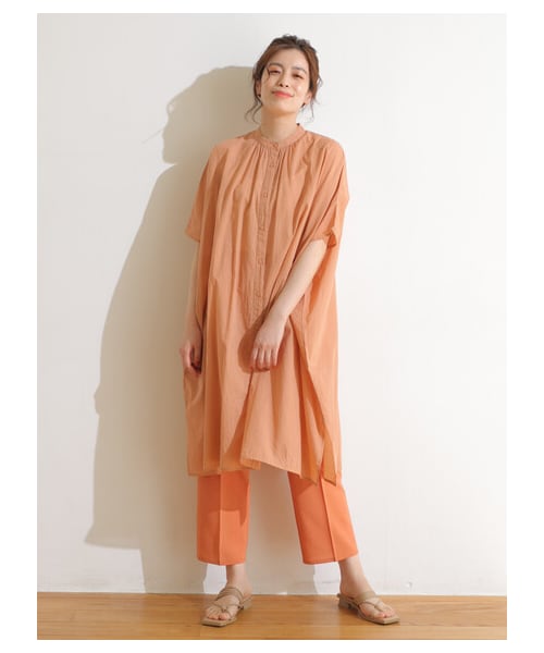 ●ふんわり柔らかい肌触りのインド綿使用アイテム バックネックにもギャザーを入れ、軽やかなシルエットに仕上げました。 サイドにスリットがあり、パンツと合わせたスタイリングがおすすめです。