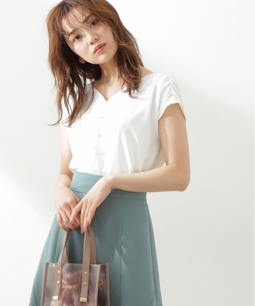 【商品特徴】肩にレースをあしらった可愛らしいブラウスです。 肩のヒゲレースやさりげないハートカットの衿ぐりで、 女性らしい印象をプラスします。フロントの釦は飾りなので、 被りでさらっと着用できます。ONもOFFにもリモートにもおすすめです。 【スタイリング】 きれいめスカートでフェミニンな通勤スタイルに。デニムスカートでカジュアルダウンも楽しめます。 <商品のお気に入り登録> お気に入りアイテムの値下げ・再入荷・在庫1点などの通知を受け取ることができる 便利機能ですので気に入ったアイテムはお気に入り登録がおすすめ! <ショップのお気に入り登録> 新商品や再入荷、セール、クーポン配布などお得な情報を受け取ることができます。 ●撮影はサンプル商品で行っている為、仕様とサイズが異なる場合がございます。 ●スタジオ及び屋外で撮影した着用画像は、光の当たり具合で色味が違って見える場合があります。予めご了承ください。