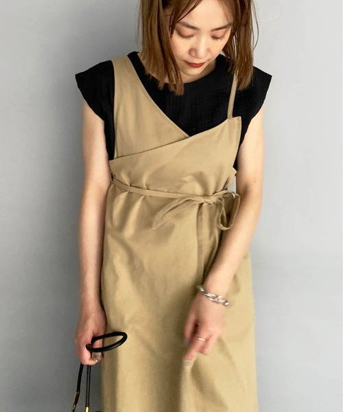 一枚でトレンドライクなスタイルが叶うキャミワンピース。 コットンブレンドの生地を使用し、 ナチュラルな雰囲気が魅力の一枚です。 フロントはワンピースの上から一枚生地を覆ったような ラップデザインになっています。 シンプルながらも存在感のあるアイテムで、 シンプルなTシャツ合わせでも様になります。 また、シアーカットソーなどのトレンドアイテムと合わせた 今年らしいレイヤードスタイルもおすすめです。 ※撮影場所や明るさにより 実際の商品と色味が若干異なる場合がございます。 ☆商品のお気に入り♡登録を押せば ”再入荷通知”や”残りわずか通知” 値下げのお知らせが届きます! お気に入りのブランド登録していただければ新商品入荷のお知らせも届きますので 是非登録してみて下さい。