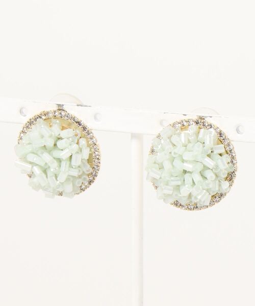 NENEME! 🔸ビーズが敷き詰められた丸型ピアス🔸 キラキラしているので、高級感のある印象に◎ 普段使いの他、オケージョンシーンにも合わせやすいデザインです!