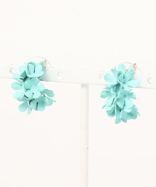 立体的なフラワーモチーフをフープに合わせたデザインピアス。ほどよくボリューミィなモチーフで、顔まわりを華やかに見せてくれます。視線をひきつける鮮やかなカラーもアクセントになります。春夏のコーディネートにもリゾート先にも活躍します。