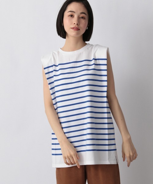 トレンド感のある肩パットを取り入れたノースリーブカットソー。肩パットは取り外しができるので、その日のスタイリング、 気分によって変えることができます。 パンツ、スカートどちらとも相性の良いアイテムです。肩パットのデザインが効いているので、シルエットがきれいで あまり太すぎないパンツとの合わせがすっきり見えるのでおすすめです。 ※サイト上のカラー名と、お届け商品に記載されているカラー名が異なる場合がございます。