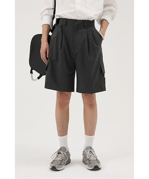 ■サイドポケット×ショートスラックスで魅せる【ネオストリートモード】【素材】高密度で織られた上質なTR地を使用。MP studiosオリジナルのTR地は程良くストレッチが利いているので、ストレスフリーな穿き心地が楽しめます。また、高密度で織られた素材ならではのさらっとした生地感と奥行きがある色合いが上品な印象に演出してくれます。【シルエット】膝上のハーフパンツで 脚のラインをキレイに魅せる事ができ、ハイウエストで履くことで更にスタイルアップを実現できます。スニーカーやサンダルなど足元を選びません。【デザインディテール】サイドポケットがミリタリーライクなショーツスラックス。タック入りに程よい丈感がトップスや足元のコーディネートに様々なアイテムが合わせやすくなっております。トップスはオーバーサイジングでバランスを取るのがオススメです。3色ラインナップで、お好みのコーディネートに合わせてお選びいただけます。instagram→m.p_studios_jp【M.P Studios】デザイナーMASONとPRINCE兄弟が手掛ける新進気鋭のコンテンポラリーブランド。世界各地を旅し、様々な異文化に触れ感じたものを独自のフィルターを通し、現代のファッションシーンに"neo street style"の新たな価値観をもたらす。全てのアイテムを徹底管理された自社工場で生産する事によって、MADE IN CHINA の常識を覆す高品質な素材、拘り抜いた縫製で採算度外視の商品供給が可能に。2019 S/S 日本初上陸。現在、日本での取り扱いはZOZOTOWNと公式オンラインのみになります。■取扱注意事項■ ※サイズは、測定方法と測定者によって多少の誤差がありますのでご了承下さい。(平置き採寸) ※生地の素材上、においが気になる場合がございます。 その際は風通しの良い所で陰干しして頂くと、ほとんど感じられなくなります。 ※湿気が少なく、日光等が直接当たらない通気のよい場所に保管してください。 ※水に濡れてしまった場合は、柔らかいきれいな布で素早く水気を取り、陰干ししてください。 ※ご購入の際は色・サイズを必ずお確かめの上、ご購入下さいませ。 ※お使いのモニターや端末により、質感・色合いが実際の商品と異なって見える場合がございます。 ※着用画像は撮影状況や光によって、多少異なる場合がございますので置き画像をご確認下さい。