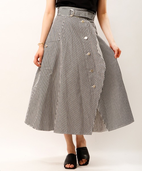 ~★ Cest Tout / セトゥ ★~ 春夏秋冬オールシーズンお使いいただけるスリットロングスカートが登場! ストライプ柄にシルバーボタン、Aラインのシルエットが大人っぽく見せてくれます。 ウエストはゴムですぽっと履けてキチンと見えするのに楽ちん♪ 取り外し可能なベルト付きです。 パーカーやTシャツなど合わせてカジュアルに! ニットやブラウス、シャツなど合わせてフェミニンにも◎! 綺麗目なスタイリングから、カジュアルなスタイリングまでトップスによって表情を変えてくれる活躍間違い無しのフレアスカートです。 足元にはトレンドのグルカサンダルや、スクエアサンダル、トングサンダルなどを合わせて夏らしいコーデも◎ カラーはネイビー(紺)・ブラック(黒)の2色展開。 ・生地の厚さ:厚い〇●〇〇〇薄い ・伸縮性:縦なし・横なし ・透け感:なし ・裏地:なし 【Cest Tout】 世代によるイメージやテイストにとらわれることなく、おしゃれ心・トレンドを取り入れる楽しさ。 素材・着心地感のクオリティにはこだわり、抱えるボディコンプレックスのカバーもクリア。 女性である事に喜びを感じ、確かな目を持ったミセスに提案するニット・カットブランド。 上質な素材、着心地の良さを追求し、ミセスの美しさや優しさを、その時々の流れの中で幅広く提案。 ちょっと贅沢な今日より半歩先のより女性的な装いをお楽しみください。 【お買いものをお楽しみいただく為の方法】 ★商品のお気に入り登録★ ・完売カラーの再入荷通知や、ラスト1点の通知、セールの通知も受け取ることができます。 ★ブランドのお気に入り登録★ ・新商品や再入荷など、いち早くブランドのお得な情報を受け取ることができます!