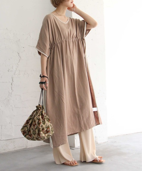 風通しが良くリラックスな着心地が魅力!トルコなどの民族衣装「カフタン」をモチーフにしたワンピース。全体的にゆったりとしたオーバーサイズで、身体を締め付けずにリラックス感のあるアイテムです。一枚でワンピースとして着ていただくのはもちろん、パンツとレイヤードして着ていただくのもおすすめです。【ANDSEARCH】大人の為の「DAILY LOOK」ON・OFF どちらのシーンにも馴染みやすく CASUAL・ELEGANT 2つのテイストの顔を持ち合わせた、20代からの女性をターゲットにagelessに展開。【お買い物をよりお楽しみいただく為に♪】 ★商品のお気に入り登録★完売カラーの再入荷通知や、ラスト1点の通知、セールの通知も受け取ることができます。★ブランドのお気に入り登録★新商品や再入荷など、いち早くブランドのお得な情報を受け取ることができます。