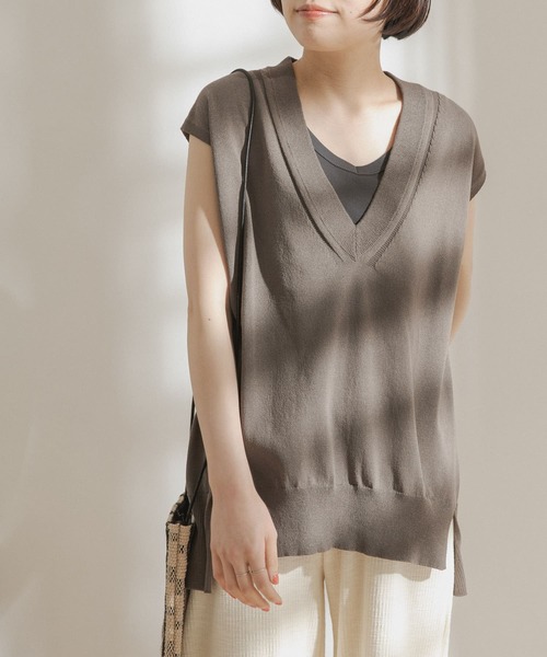 清涼感ある肌触りが夏にも着心地よく、深Vネックが女性らしい抜け感をプラスしたノースリーブニット。軽い素材が特徴の国産の和紙混糸を使用し、速乾性や吸水性も兼ね備えることでイージーケアにも富んだ使い勝手の良いアイテムです。ざっくりととったサイドスリットや所々の組織にこだわることで他にはない一着が完成。インナーとのレイヤード次第で雰囲気の変わり、合わせるだけでスタイリングを格上げしてくれる主役級アイテムです。【FORK&SPOON(フォークアンドスプーン)】 DOORSのプライベートレーベル。その名前のとおり「毎日食事を摂るように、毎日大切に着てほしい」という思いが込められています。毎日着たくなる様な心地のよいベーシックスタイルは、世代を超えてお楽しみいただけます。※長時間水に浸けておいたり、濡れたまま放置しないで、洗濯後はすばやく形を整えて干してください。※濃色品は、過度の摩擦や汗、水濡れなどにより、色移りすることがありますのでご注意ください。※その他お取り扱いに関しましては、商品に付属のアテンションタグをご覧ください。※商品画像は、光の当たり具合やパソコンなどの閲覧環境により、実際の色味と異なって見える場合がございます。予めご了承ください。※商品の色味の目安は、商品単体の画像をご参照ください。-----------------------------透け感:なし伸縮性:ややあり裏地:なし光沢:なしポケット:なし-----------------------------