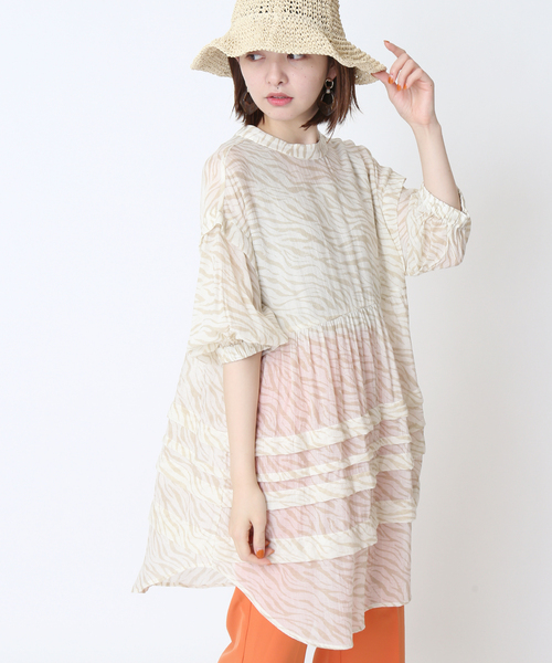 【2021SS】 B.C STOCK トレンドの透け感チュニックが登場! 着心地の良い薄手の生地感が、動くたび揺れて軽やかさを演出してくれるアイテム。 シワ感のあるレーヨン×ナイロン素材なので、こなれた雰囲気に。太めのタックをランダムに入れた裾がポイントで、ゼブラ柄の展開もあるので夏に向けてのスタイリングを今っぽくチェンジさせてくれます。 ご自宅で手洗いにてケアして頂けます◎ ※取り扱いについては、商品についている品質表示でご確認ください。 ※店頭・屋外での撮影画像は、光の当たり具合で色味が違って見える場合があります。商品の色味は、スタジオ撮影の画像をご参照ください。 モデルサイズ:身長:160cm バスト:75cm ウェスト:59cm ヒップ:80cm 着用サイズ:フリー 本体:手洗い可能