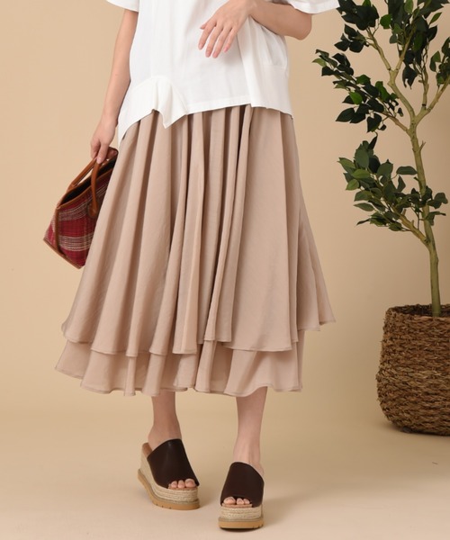 シアーフレアースカートに新作が登場ですシアー感のあるナチュラルな素材で作られたギャザーフレアーシルエットが女性らしさを演出してくれます。生地を2枚重ねることによって生まれる贅沢な分量感が大人な印象をプラスしてくれ、旬なリラックススタイルに決まります。シンプルなTシャツにもぴったり。サンダルを合わせればリゾートにも◎もちろんブラウスやカットソーで大人レディなスタイルにも良く合います。カラー展開はこれからのシーズンに活躍するベーシックなカラーを揃えたので、幅広いコーディネイトに◎■取扱いご自宅でイージーケア(手洗い)が出来ます。INTERPLANET/actuel(インタープラネット/アクチュエル)・conceptいつだって私らしく、私自身のスタイルが決まる。。。時代や年齢に媚びない『らしさ』を纏って生きる女性へ。旬なベーシックと抜け感のあるカジュアルをMIX。そんな大人カジュアルコーデを提案します。・お気に入りの登録についてショップ、ブランドのお気に入り登録でクーポンやタイムセールの通知などお得な情報を受け取ることができます♪また、気になるアイテムのお気に入り登録でセールや再入荷の通知など受け取ることができます。