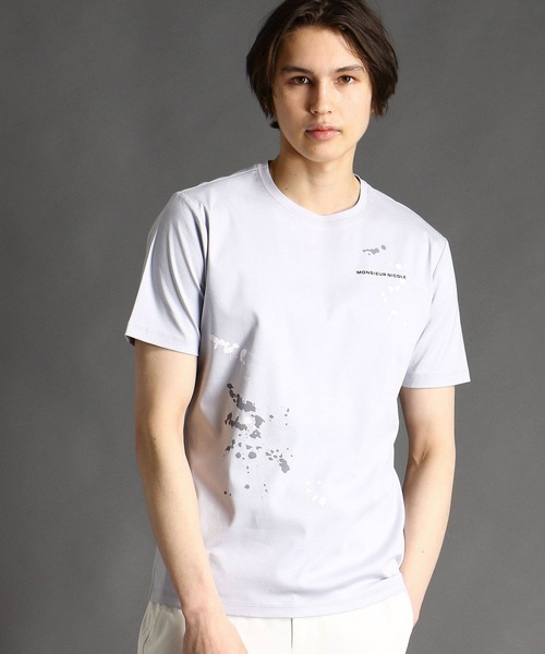 シルケットスムース素材のロゴ×ペイントプリントTシャツ。張り感と上品な光沢に拘ったクリアな表面感のスムース生地を使用。左胸にブランドネームを入れたシンプルなTシャツに、ペイント風のグラフィックを入れて存在感のあるTシャツに仕上げました。 ※画像の商品はサンプルです。実際の商品とは仕様・加工・サイズ・素材が若干異なる場合がございます。