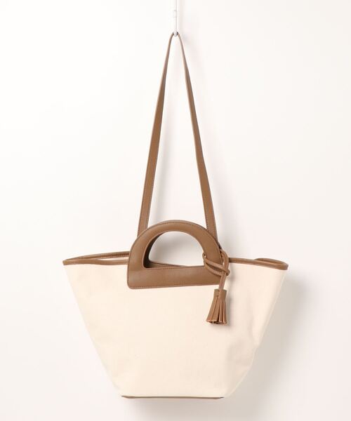 デイリーに使いやすい、船形フォルムのキャンバストートバッグ。 ハンドルやタッセルチャームなど、要所に合皮素材を落とし込むことでカジュアルさが程良くおさえられ、すっきりとしたスマートな印象に。小ぶりながらマチが広く、両サイドに内ポケットを配置するなど、機能性の高さも魅力です。付属ストラップを取り付ければ、ショルダータイプにもアレンジ可能な2WAY仕様。