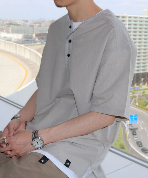 速乾性とストレッチ性に優れた素材(COOLDOTS/クールドッツ)を使用した新型プルオーバーシャツ。 ヘンリーネックデザインなので1枚で着ても様になる夏に嬉しいアイテム。 吸水拡散性・通気性が高く、しわになりにくい高いイージーケア性も魅力です。 【スタッフ着用コメント】 身長:170cm/体重:52kg/体型:細身/普段サイズ:M/着用サイズ:M サイズ感:ややゆとりのあるデザインです。 素材感: シワになりづらそうなサラッとした素材感です。 着心地:生地が軽いのでストレスなく快適に着ることができます。 COOLDOTSシリーズは他にも種類豊富に展開中! バンドカラーシャツ → 1-0091-2-51-001 ボードショーツ → 1-0091-2-59-001 マスク → 1-0091-2-53-111 シャツカーディガン → 1-0091-1-51-001 イージーパンツ → 1-0091-1-59-001 ★★★ GLOSTER(グロスター) ワーク/ミリタリー/ヴィンテージをベースにその時代にあったエッセンスをミックスさせ、 パターン、品質、縫製、着心地を大切にしながらベーシックだけどシルエットや細部のディテールにこだわった遊び心のあるアイテムを提案しています。 ※店頭及び屋外での撮影画像は、光の当たり具合で色味が違って見える場合があります。商品の色味は、スタジオ撮影の画像をご参照下さい。 ※商品画像に関しては出来る限り忠実に表示出来るよう努めておりますが、お客様がご利用のモニターの設定及び特性により、実際の商品と比較し色味に若干の誤差が生じる場合があります。 ◇商品のお気に入り登録◇ 【お気に入りに登録】を是非ご活用ください。 再入荷の通知や、ラスト1点の通知、セールの通知がいち早く届きます。 ◇ブランドのお気に入り登録◇ 新商品や再入荷など、いち早くブランドのお得情報が届きます。